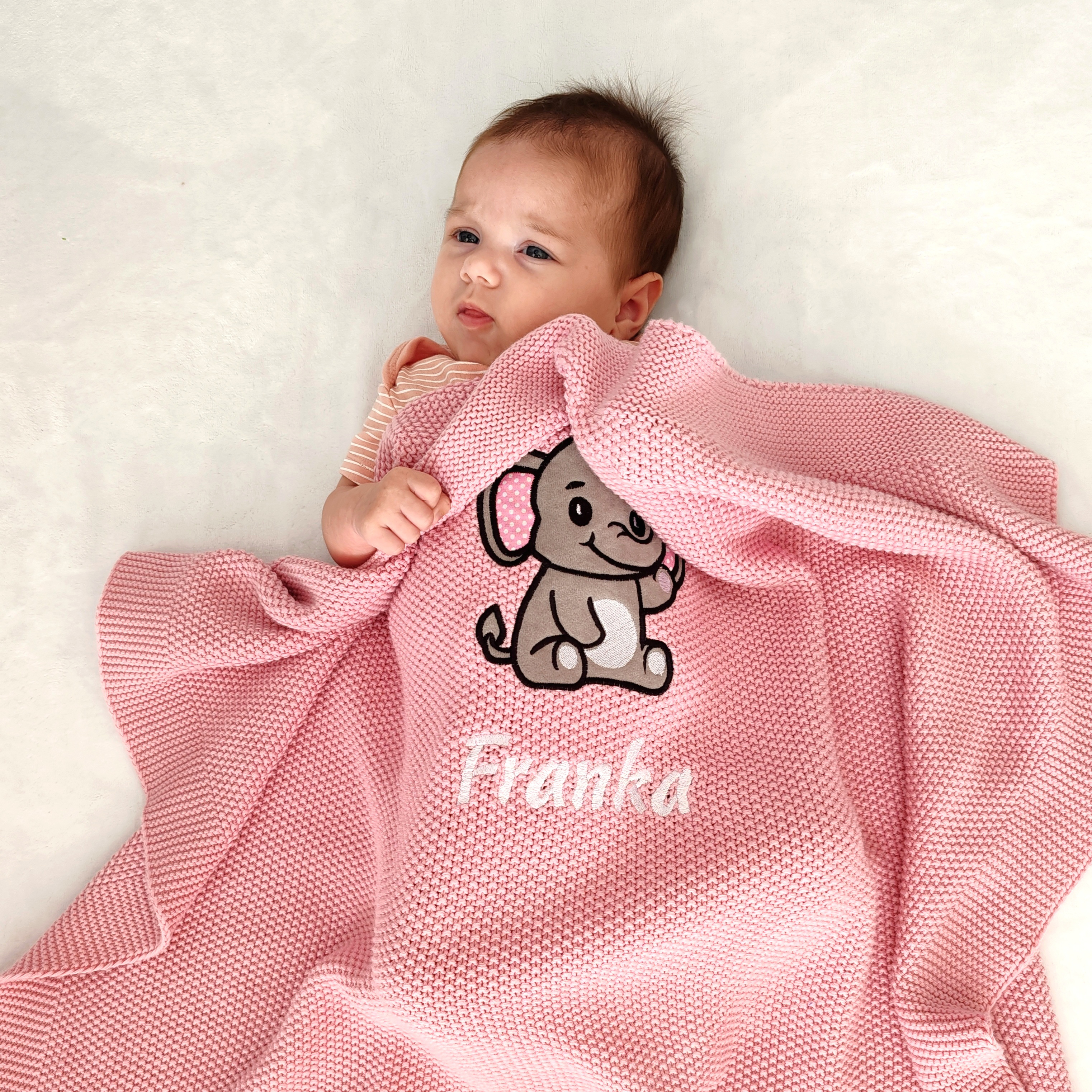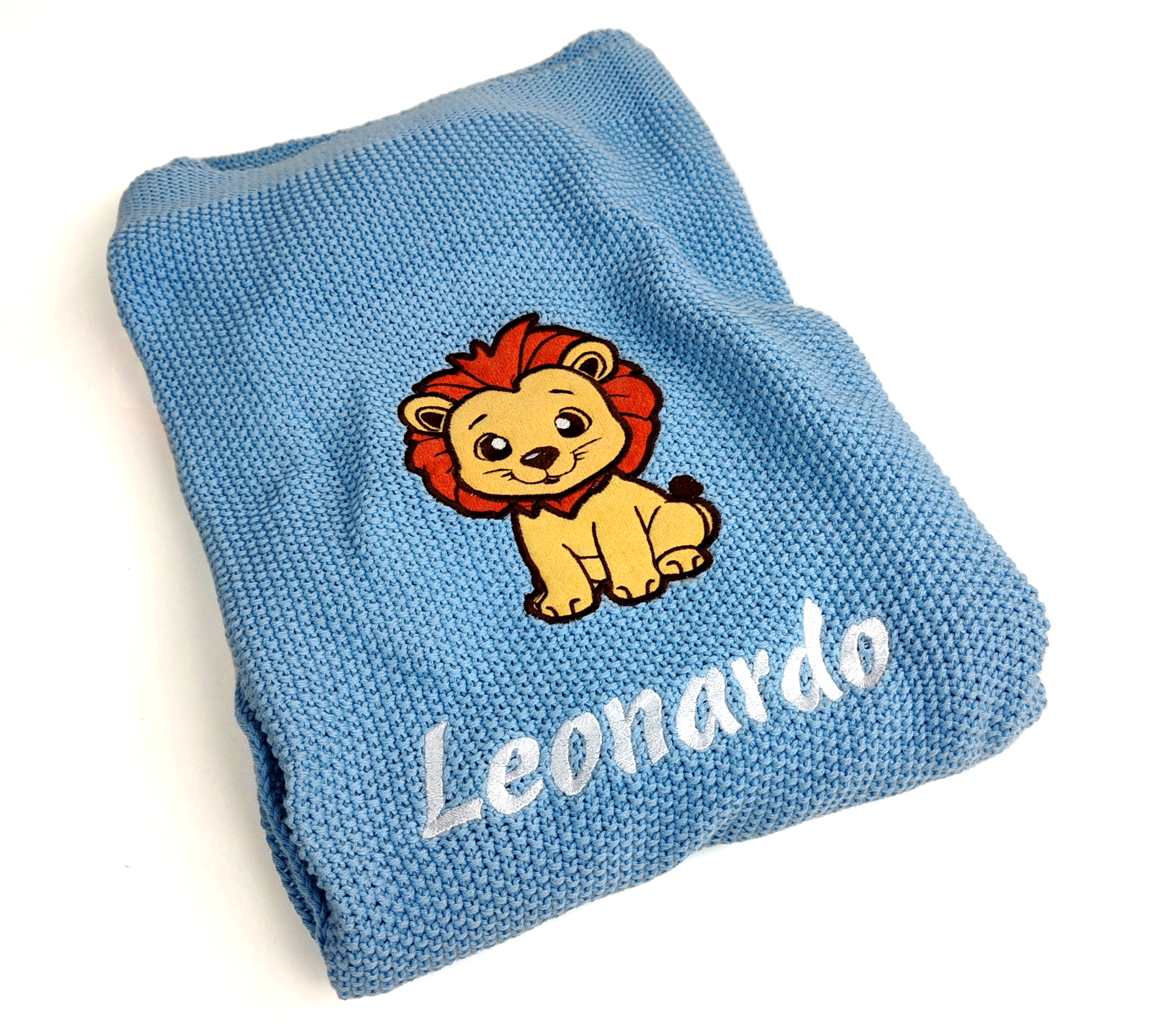 Dziany kocyk z 100% bawełny, bezpieczny dla delikatnej skóry dziecka. Personalizacja imieniem i motywem sprawia, że to wyjątkowy prezent. Read more